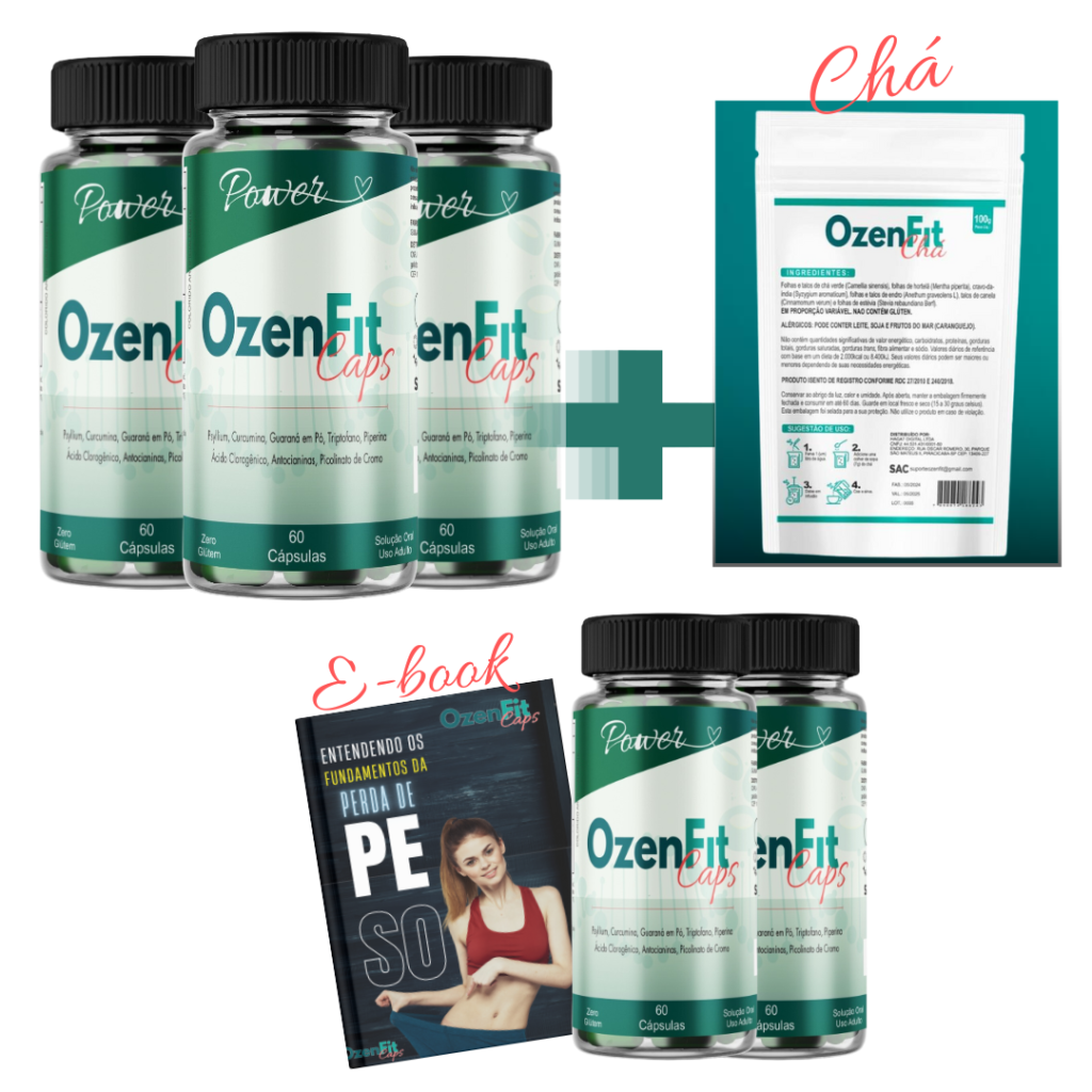 OZENFIT CAPS é um produto natural que traz os benefícios do Psyllium, Vitamina C,  Cromo, Óleo de cartamo, Curcuma, Cafeina. Quando no organismo ele promove saciedade, emagrecimento, energia e saúde para o corpo.